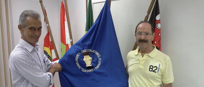 “Fui recebido pelo amigo Júlio José Rodrigues, presidente do sindicato, que me contou um pouco da história do Sindvest e da inusitada bandeira da entidade, ao lado da qual fizeram questão de registrar em foto o momento”, disse Vanderlei, acrescentando que não poderia fechar melhor 2013, que foi excelente.