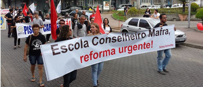 Na tarde de ontem (2) o Sindicato dos Trabalhadores em Educação de Santa Catarina (Sinte/SC) realizou uma mobilização com professores das escolas públicas estaduais da região de Blumenau. O grupo fez uma passeata pela rua Quinze de Novembro, no centro de Blumenau. O presidente da Câmara de Vereadores, Vanderlei de Oliveria (PT), participou da manifestação.